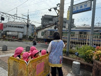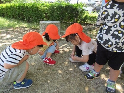 ☆散歩車に乗って、近くの公園まで出かけて遊びます。花や鳥や虫を見て大喜びです。