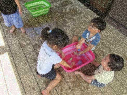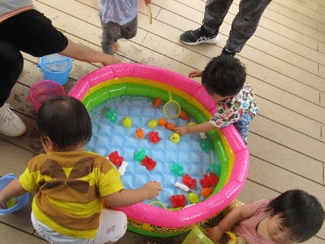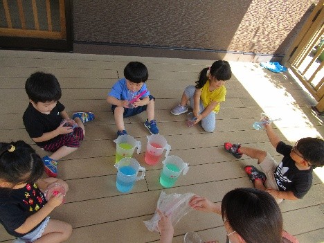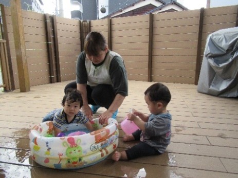 ☆ウッドテラスや砂場では、さまざまな遊びを楽しんでいます。