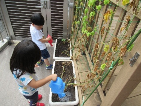 ☆ゴーヤやナス、じゃがいもなどの野菜の栽培を通して食育にも取り組んでいます。